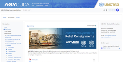The ASYREC e-learning platform provides users with documentation, video tutorials, multiple choices questions, exercises, and forums to understand the concepts and context behind the need for the automation of relief consignments procedures and to optimize the use of the ASYREC system.